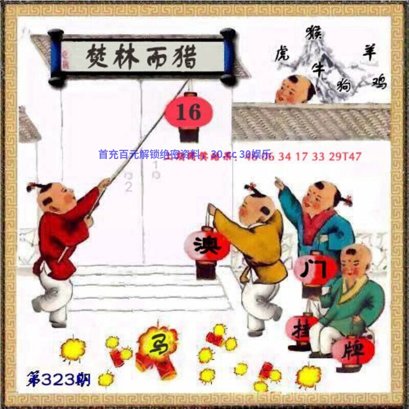 323期正版彩图挂牌:挂:16 爆:马 挂牌成语:焚林而猎 挂牌出肖:鸡牛狗虎猴羊